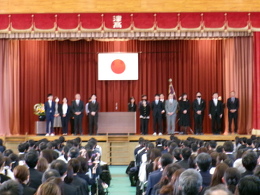 2026年04月08日(水) 行事 NEW ようこそ津高校へ!令和8年度入学式が挙行されました。【2026.04.08】 本日、令和8年度入学式が挙行されました! 桜舞い散る暖かい日差しの中、320名の新入生を迎え入れることが出来ました。 ようこそ、「自主・自律」の津高校へ。 入学式に先駆けて、始業式と着任式が行われました。 桜舞う中、入学式が行われました。 準備万端!あとは新入生を迎え入れるだけです。 多くの祝電も届きました。 入学式スタート直前。少し緊張しています。 こちらは少しリラックスしています。もうすぐ始まるよ。 1年担任の先生方が全員で受付をされています。 PTA会長からもお話を頂きました。 入学式後の新入生を先輩たちが出迎えます。 1年主任の先生も緊張…しているのでしょうか? 吹奏楽部&音楽部による校歌斉唱です。 通る新入生に、熱い思いをぶつけます! 津高生としての決意を新入生代表として宣誓しました! 新入生に向けて、担任&主任の紹介です。 校長先生も新入生を見送ります。