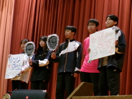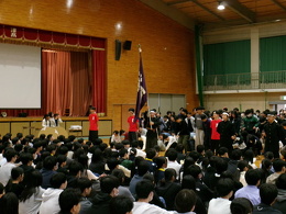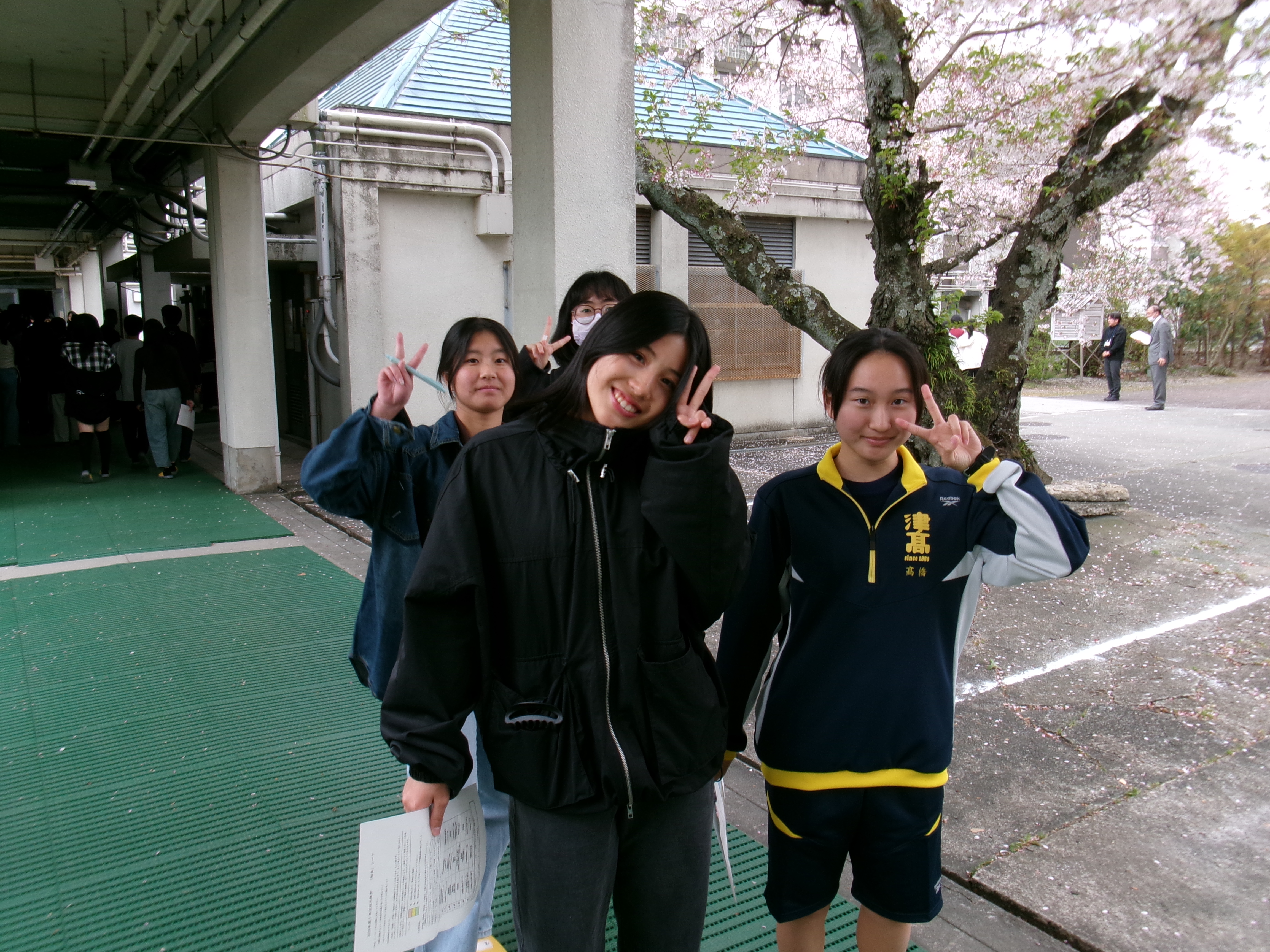 2026年04月09日(木) 行事 NEW 1年生が校内探索スタンプラリー&対面式を行いました☆【2026.04.09】 1年生が4人1組に分かれて協力し、校内散策スタンプラリーを行いました。 これから3年間学ぶことになる歴史ある校舎を、隈なく散策できました。 午後からは対面式を行いました。 対面式を行いました!緊張の面持ちで体育館に並びます。 応援団が1年生を熱く迎えます! 応援団と2、3年生で校歌合唱!!! 新入生代表が挨拶しました。 生徒会長がVTRで出演!歓迎の言葉です。 部活紹介スタート!先陣を切って野球部からです。 ソフトテニス部です!お手製の団扇持参です。 美術部です。自慢の作品を持ってきました! 2階の渡り廊下にて。桜をバックに。 水泳部の泳ぎのデモンストレーション。速すぎて捉えられない。 1年生校内探索です!1階渡り廊下にて。順調ですか? 事務室前にて。廊下には先輩方の素敵な絵が並びます。 ダンス部です。これも速すぎて捉えられない。 購買前にて。後ろではクラス写真の撮影中です。 校長室も探索地点です!
