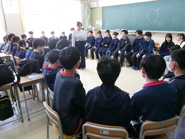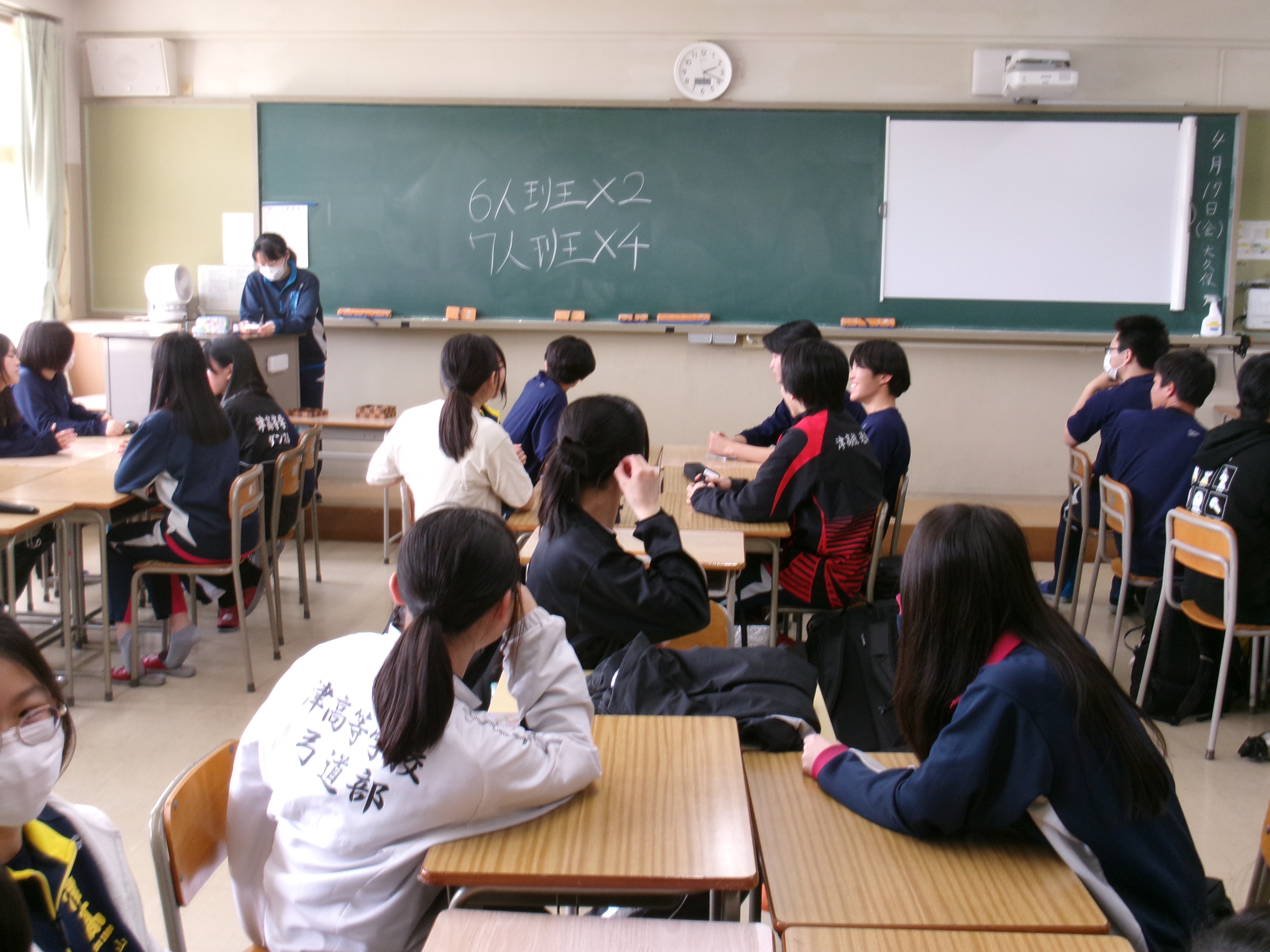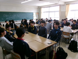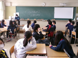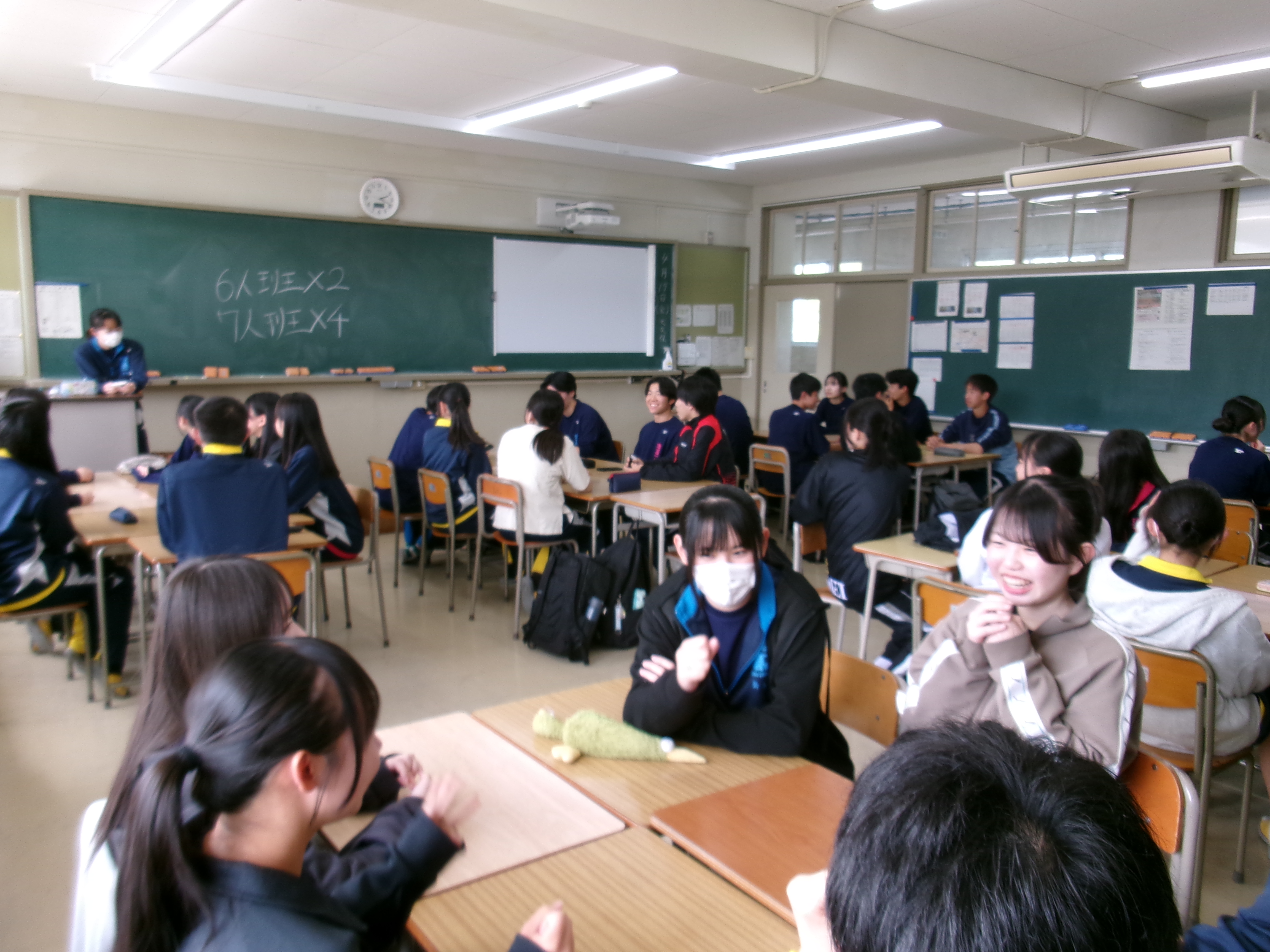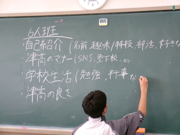 2026年04月17日(金) 行事 津高校名物「縦割りディスカッション」!!!【2026.04.17】 本日5限目に「縦割りディスカッション」が行われました!!! 全校生徒が3学年混合のホームルームに分かれ、さらに先輩・後輩が混ざった6・7人の班で熟議しました。 アイスブレイクの後、先輩は1年生の質問に応えたり、勉強や学校生活のことをアドバイスするなどして、 自身の「津高生」像を1年生に伝えていました。 1年生も早く「津高生」になってくださいね☆ 緊張の面持ち…かな? 班を作り、ディスカッションのテーマを提示します。 アイスブレイクでフルーツバスケット 「体育祭が楽しみな人!!」 ザワザワザワ、ガヤガヤガヤ… 3年生がディスカッションを引っ張ります! もう既に盛り上がっていますね☆