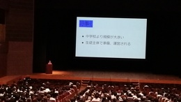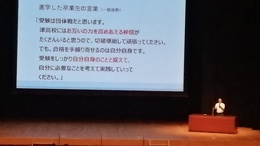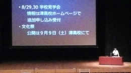 2023年09月29日(金) 行事 「津高入門講座」を実施しました。【2023.8.17】 「津高入門講座」を三重県総合文化センター大ホールにて実施しました。中学1~3年生のみなさんおよびその保護者の方がたに津高校のことをよく知っていただくための行事です。 入門講座パンフレット 第1部 学校長挨拶 生徒会長挨拶 そして現役津高生が「津高の魅力」を伝えます。 音楽部による校歌斉唱 第2部 ・津高の学習指導について ・津高の進路指導について 運営してくれた津高入門講座生徒スタッフ