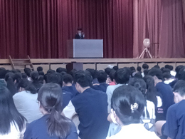 避難訓練・後期始業式・SSH台湾研修報告会を行いました。