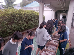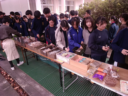 2024年11月05日(火) 行事 月に一度、手作り菓子の販売が始まりました。【2024.10.22】 月に一度、お菓子工房M(えむ)様の手作りお菓子販売が始まりました。 ガレットココやアメリカンクッキー、ラスクにプリン等も販売され、当日は多くの生徒が詰めかけました。