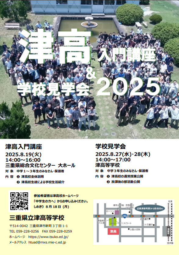 (NEW!)2025 夏の「津高入門講座」「学校見学会」のお知らせ