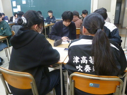 2025年11月21日(金) 行事 「2学年人権公開授業」開催!【2025.11.21】 津高校「人権LHR」を公開授業で開催! 2年生各クラスの人権委員が授業運営! 多様な授業手順、各クラスで設定! 各クラス内で活発な意見交換を展開! 人権委員がグループに寄り添って助言! 付箋で多様な意見を集め、クラスで議論! クラスの意見を的確にまとめていく! SNSの課題を学ぶクラスは実機活用! 多数の皆様に授業をご覧いただきました!