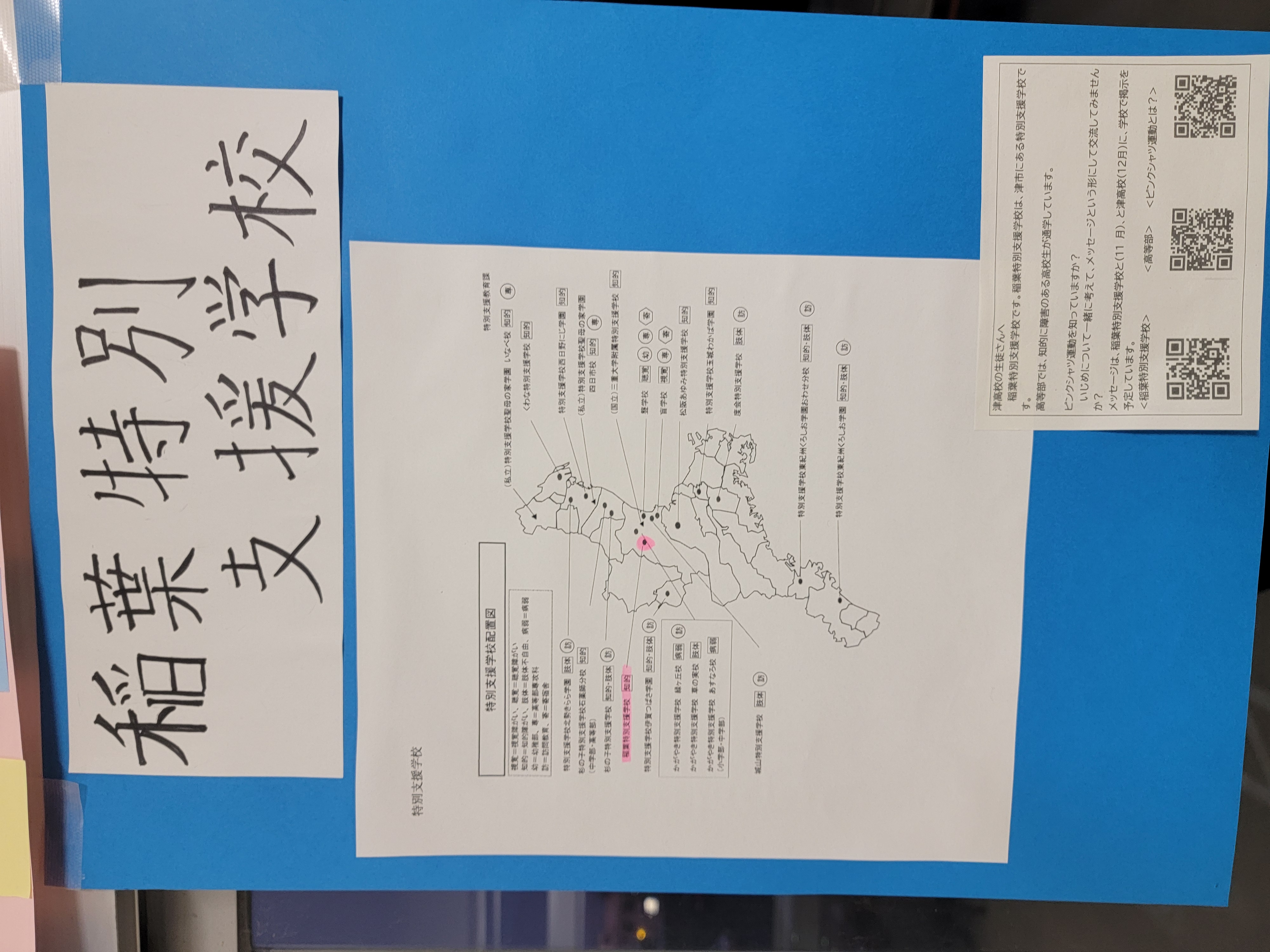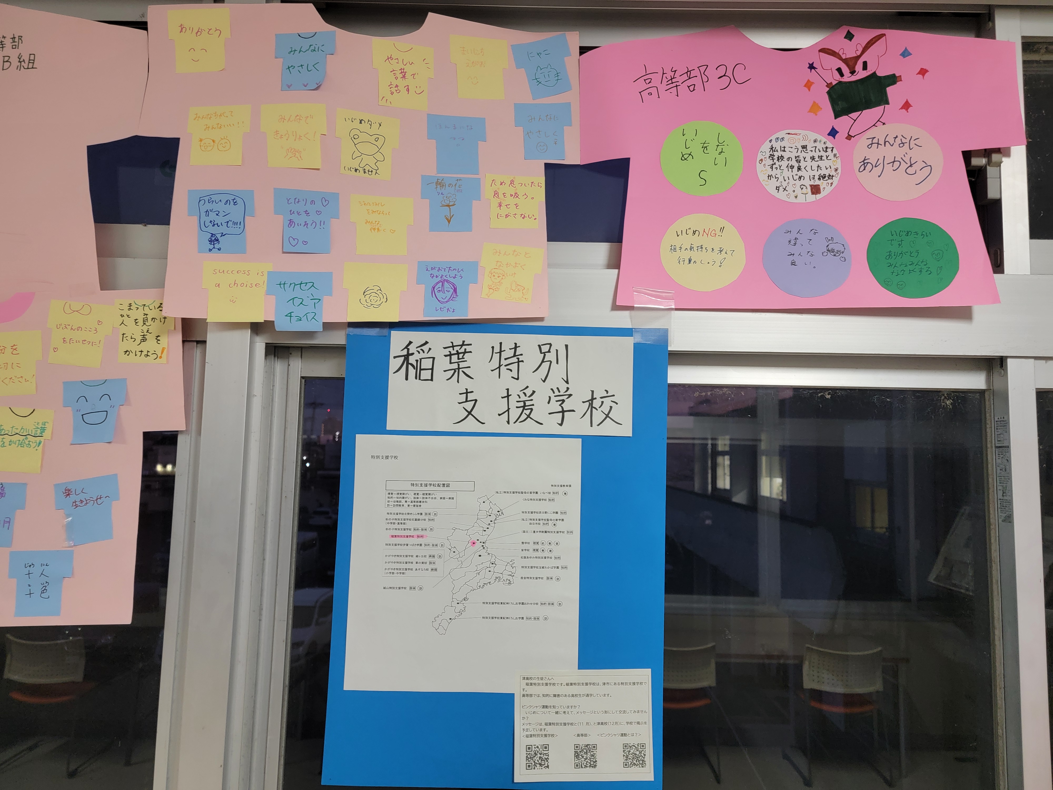 両校で全校生徒からメッセージを募集し、集まったメッセージに津高校書道部による題字を添えて、11月に稲葉特別支援学校で、12月に津高校で掲示しました。