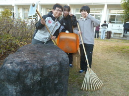 津高校の広大な敷地を3学年全員で分担し、一年間の感謝を込めて隅々まで磨き上げました。