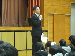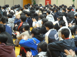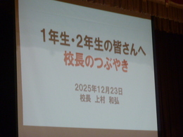 1・2年生は冬休みを翌日に控え、体育館に集いました。