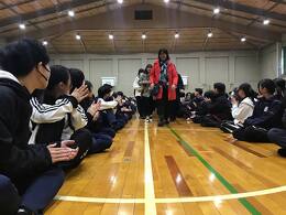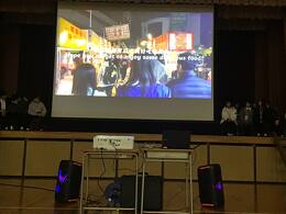 全校生徒の歓迎会、拍手の中を堂々入場!