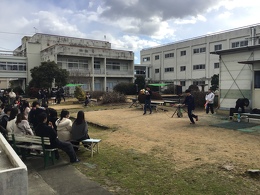 昼休み、全校生徒とジャグリング部見学!