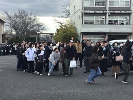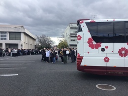 全校生徒で、走り出すバスを見送る!