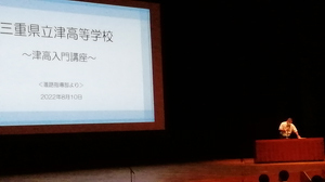 2022年08月10日(水) お知らせ 津高入門講座を実施しました。 津高入門講座を実施しました。 2022.8.10(水) 中学3年生とその保護者を対象に、津高入門講座を 三重県総合文化センター大ホールで行いました。 2022津高入門講座パンフレット 津高生の声ものっています。 歓迎の音楽部合唱 津高生実行委員による学校紹介 「津高に来てよかったことは?」 「津高校で待ってるよ~!」 学校長挨拶 教務部からの説明 進路指導部からの説明