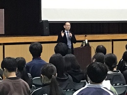 現代教育の先導者である 東京大学教授 鈴木 寛 氏を迎え、全校生徒への講演会を開催しました。