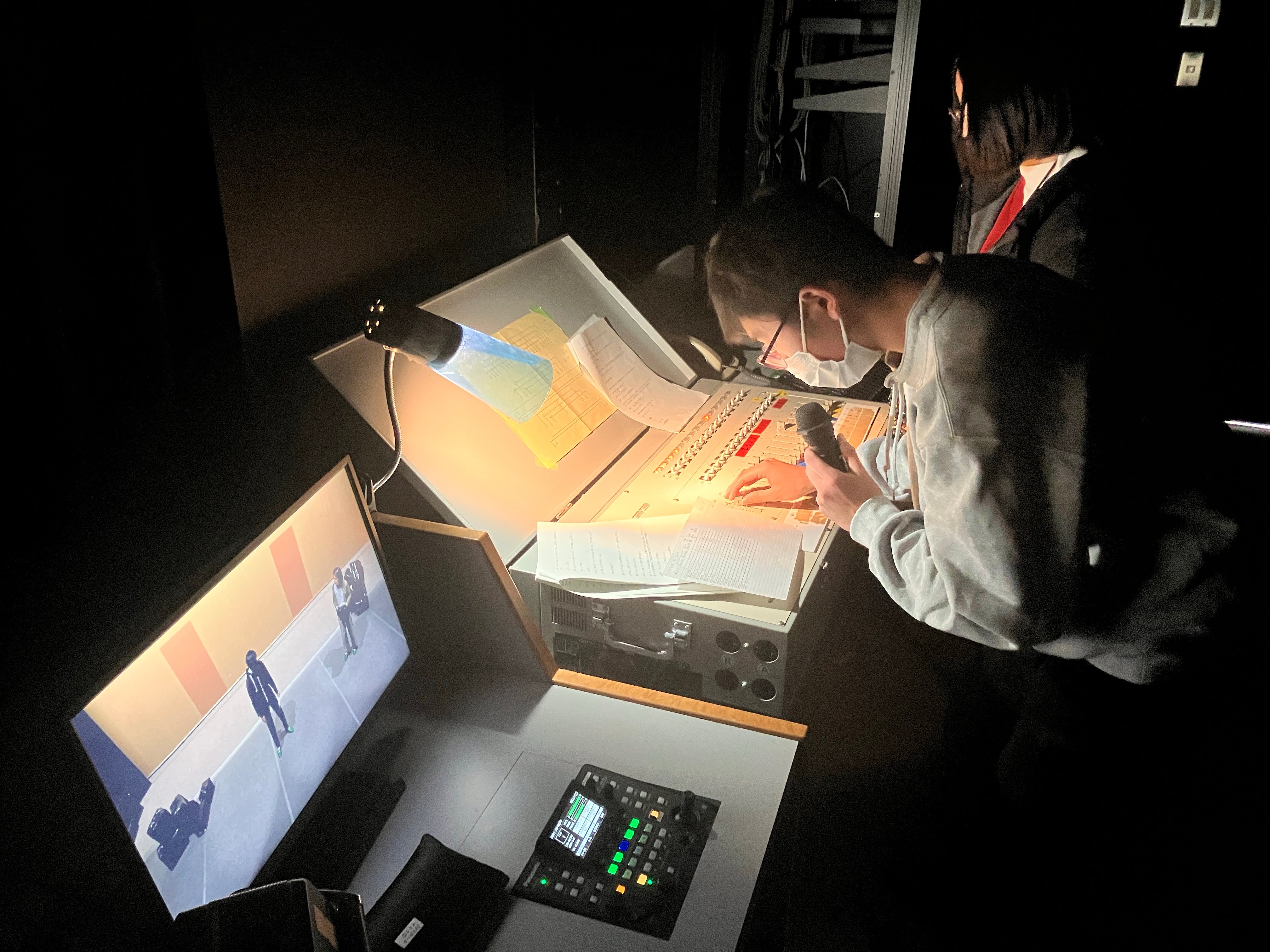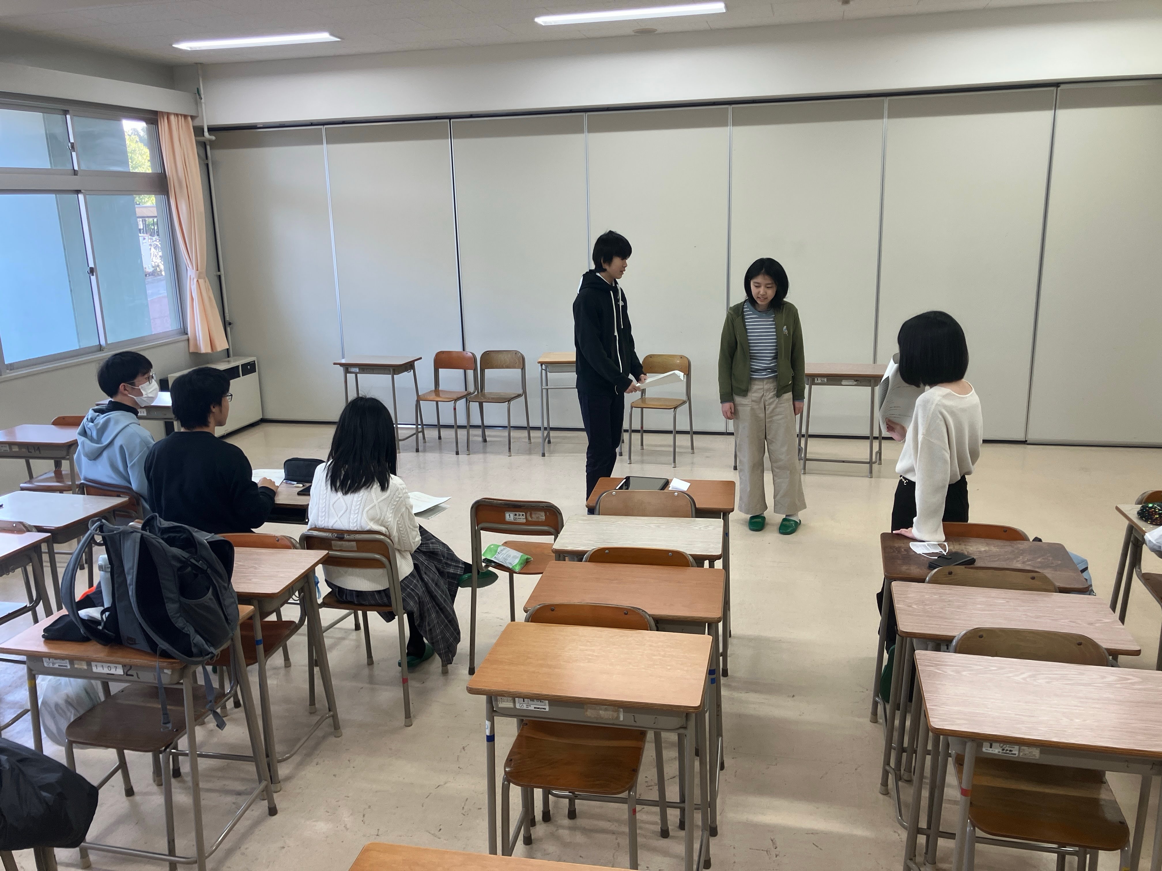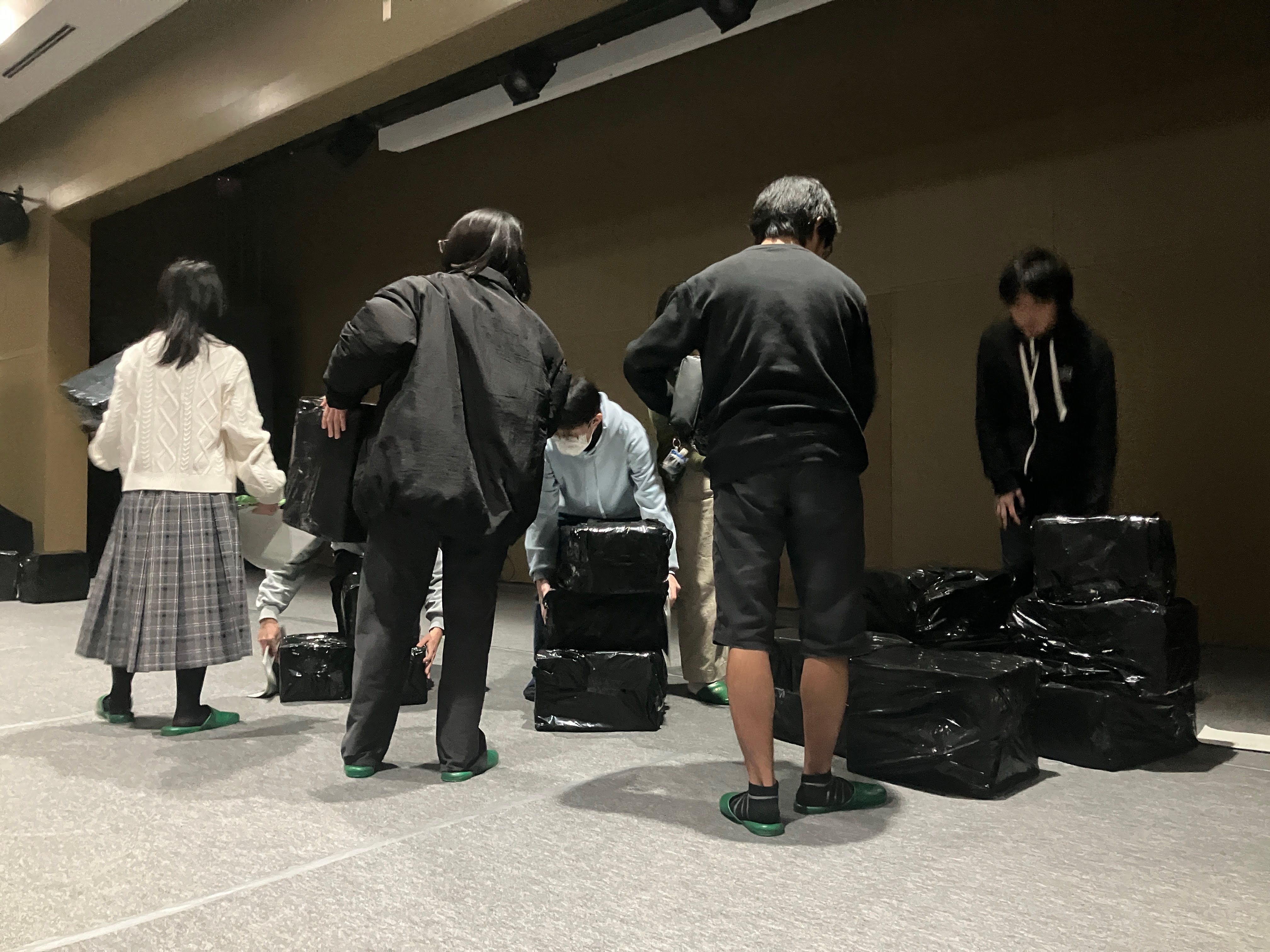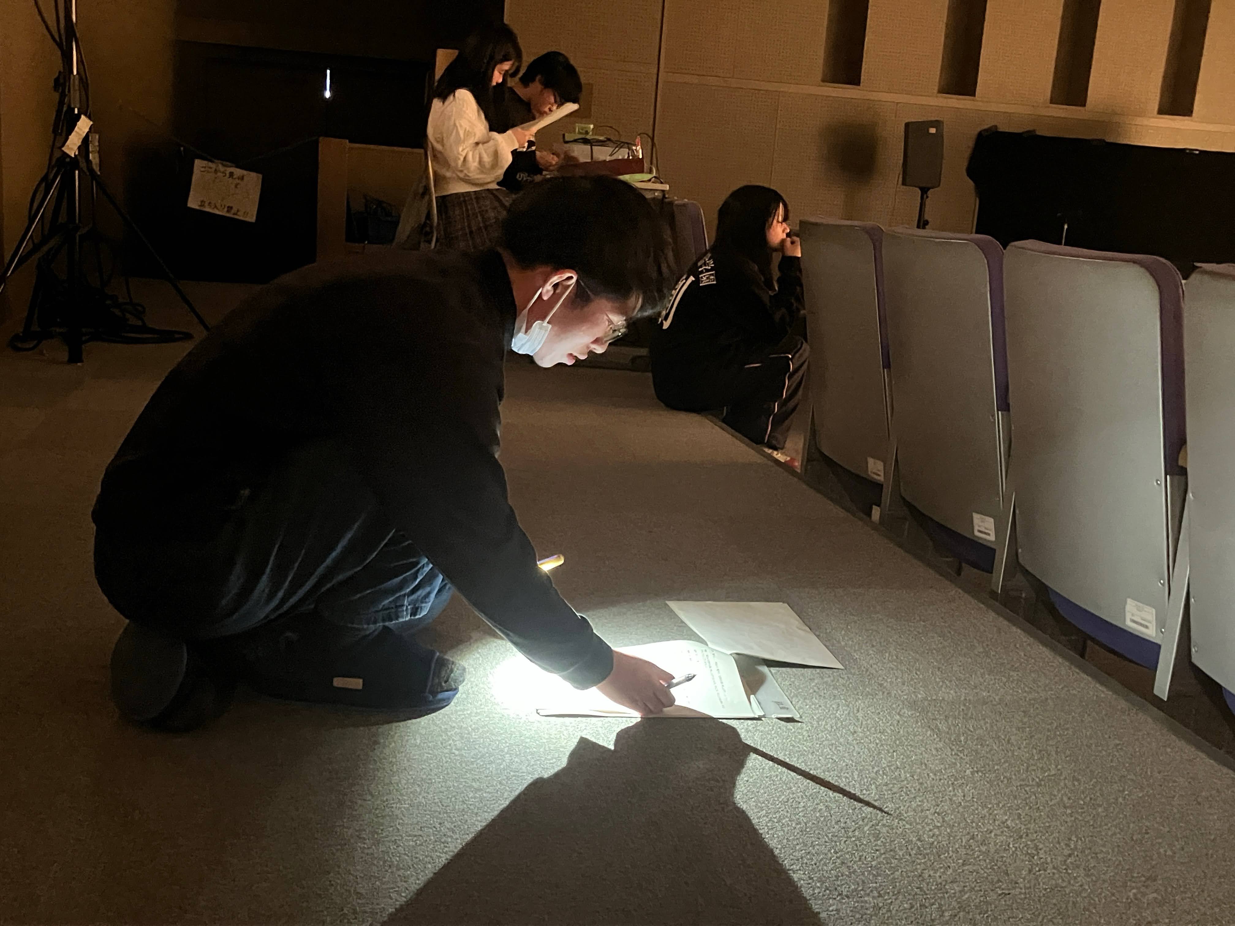 2025年12月15日(月) 部活 演劇部「いな総演劇祭2025」参加!【2025.12.13】 主催の いなべ総合学園高校 が会場! 5高校の演劇部が発表交流しました! トップバッターの津高校、リハ開始! あいさつ・打合せ、本番準備に進みます! 光と影の表現へのこだわり、照明係! 舞台用の大道具を手際よく設置していく! 舞台監督がすべてをまとめ、本番へ! 音響係、音量・タイミングを入念に確認! 津高校はオリジナル劇「劇場」を初披露!