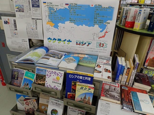 緊急展示「ウクライナとロシアと日本」を開始しました 2022年03月03日(木) 皆さんは、ウクライナのことをどれだけ知っていますか?どんな歴史があり、どんな言葉を話し、どんな食べ物を食べ、どんな文化を持った人々が暮らしているのでしょう? 津高図書館では、ウクライナとロシアに関する様々な本を展示しています。メディアでは様々な考察や意見が言われていますが、まずは「自分自身で知る」ことからすべてが始まると思います。ぜひどうぞ。 展示ポスター(クリックで拡大)