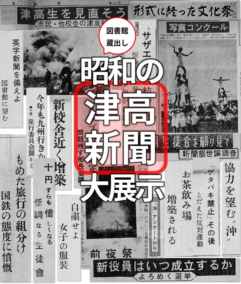 昭和の「津高新聞」大展示 2024年07月22日(月) 津高校図書館には、「津高新聞」の昭和のバックナンバーもあります。 今回は、その中の一部を展示します。 「故きを温ねて新しきを知る」と言います。 現代との違いや共通点を発見してみましょう。