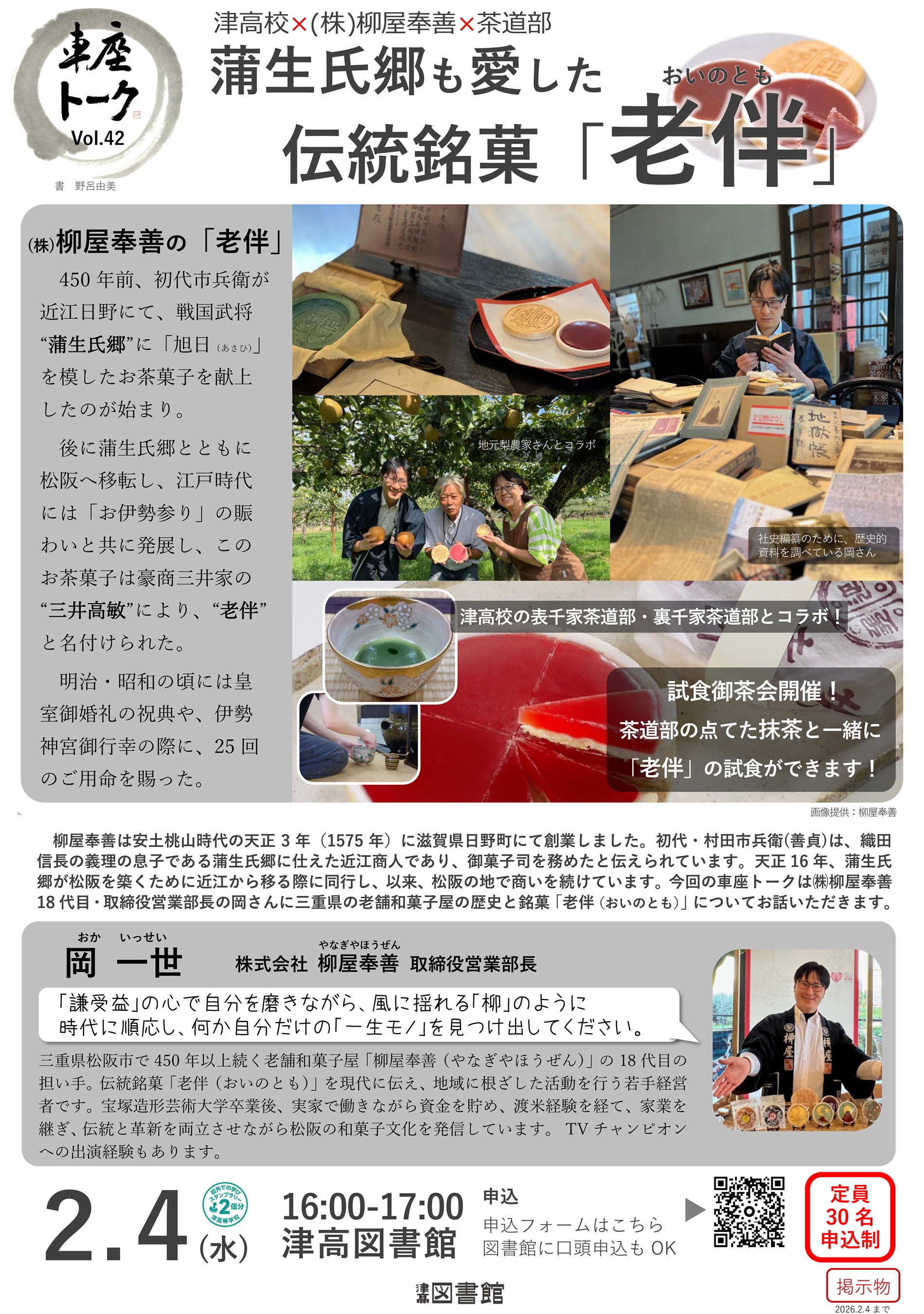 車座トーク Vol.42「蒲生氏郷も愛した伝統銘菓「老伴」」のご案内