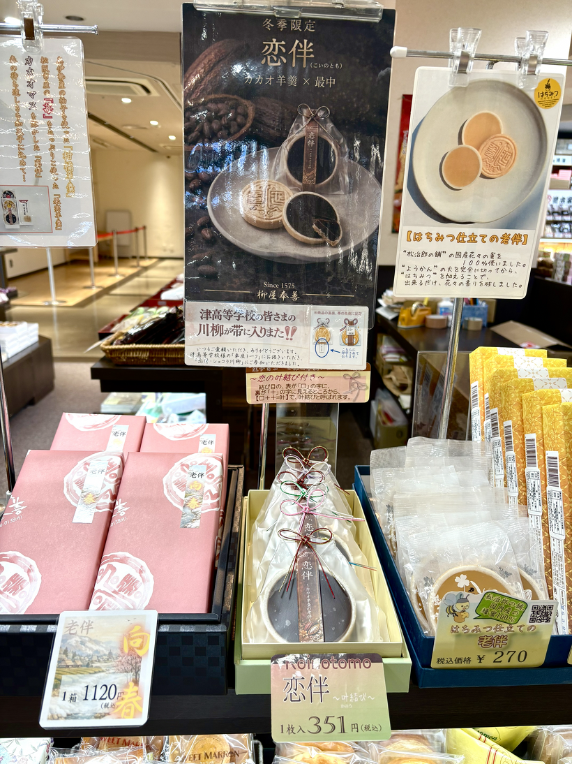 柳屋奉善主催の「ショコラで川柳!」に参加した津高生の川柳が商品の帯、裏面に印刷された「恋伴」が数量限定で販売されています。