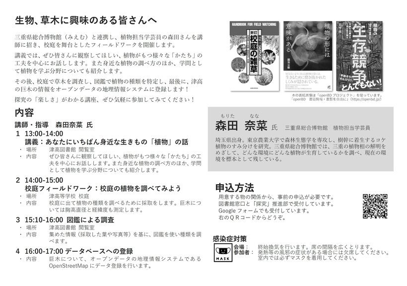 図書館図鑑活用講座:津高の草木を探究&記録しよう!のご案内
