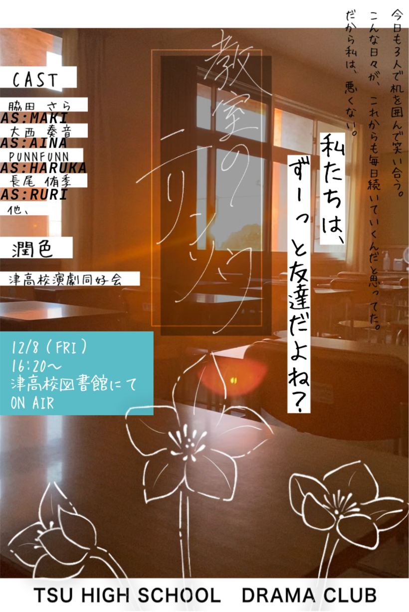 毎回大好評の演劇同好会による図書館ライブ。今回は、演劇同好会制作の動画上映会を行います。タイトルは「教室のニリンソウ」。演劇同好会のオリジナル作品です。どんなお話なのでしょう?