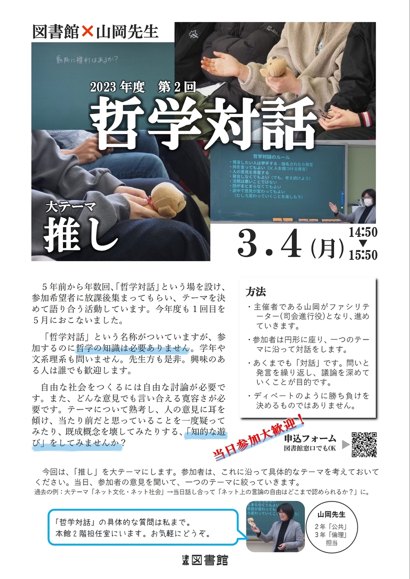図書館×山岡先生 哲学対話(2023 第2回)のご案内