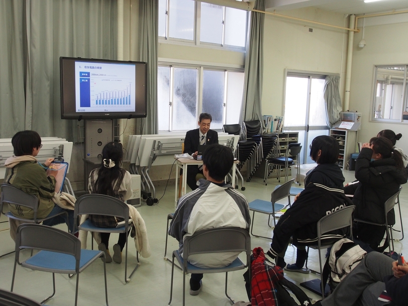 2月5日(水曜日)放課後、車座トークVol.32「違う文化の中で暮らしながら働く」を開催しました。9人の方にご参加いただきました。話し手は、津高卒業生で住友電装株式会社 人事部長の川瀬雅生様です。