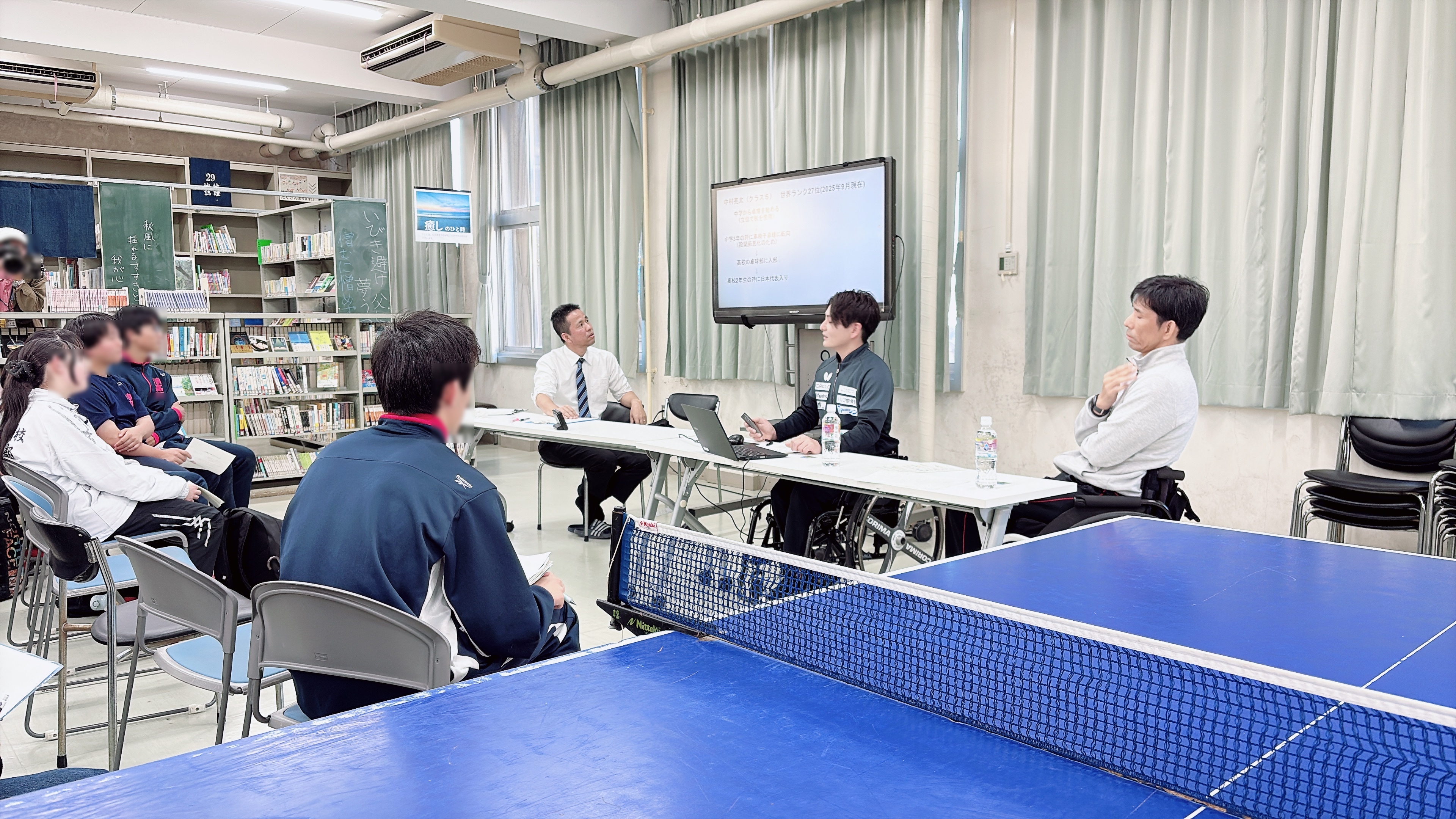 10月29日(水)放課後、車座トーク Vol.39「パラ卓球の魅力」を開催しました。50人の方にご参加いただきました。話し手は、パラ卓球アスリートの玉津徹也選手・中村亮太選手、本校教員・中川成人先生です。