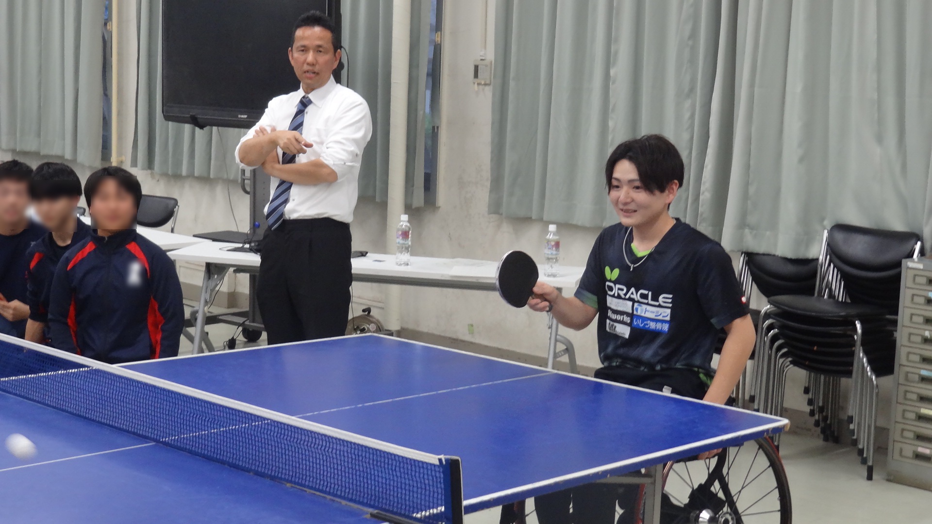 ・貴重なお話をしてくださりありがとうございました。私は今まであまりパラ卓球について知らなかったのですが、今回のお話を聞いてどのようなルールがあるのか知ることができました。また、打ちにくいところを狙う戦略性と苦手なところをどう克服するのかというのが面白そうだと思いました。 これからのご活躍を心からお祈りしています。頑張ってください!