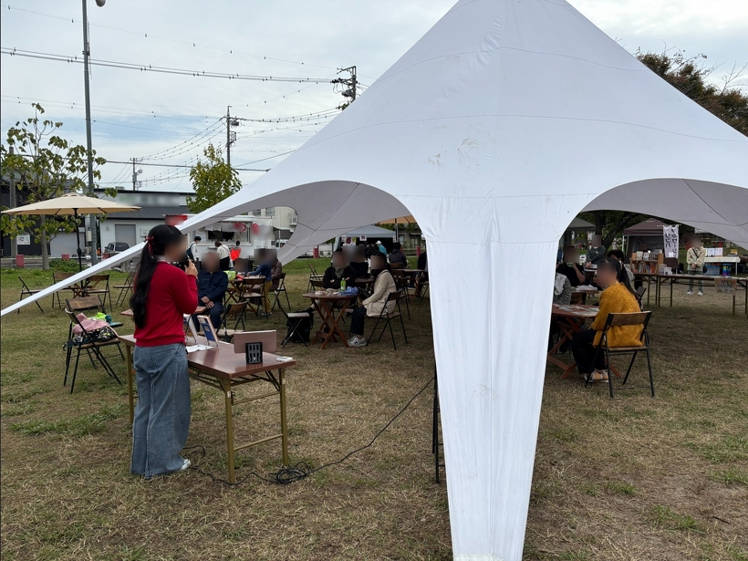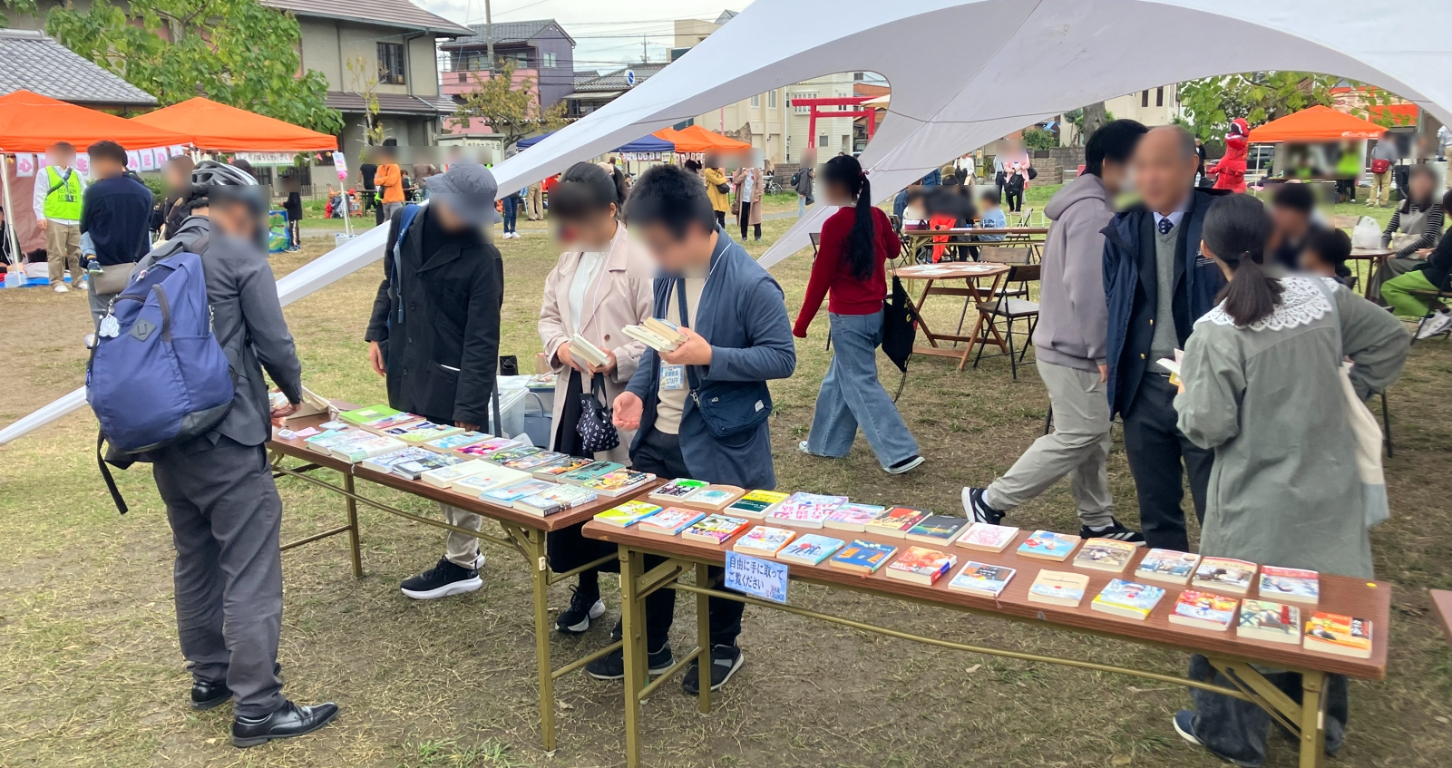 10月25日(土)~11月3日(月)に開催されている「ふらっと大門・丸之内@観音公園」に、本校図書委員が参加しました。津高校が参加したのは11月2日(日)です。取組内容は「津高生によるビブリオバトル」と「ブック・エクスチェンジ」の実施です。図書委員14名と有志の生徒2名、引率教職員3名が参加しました。