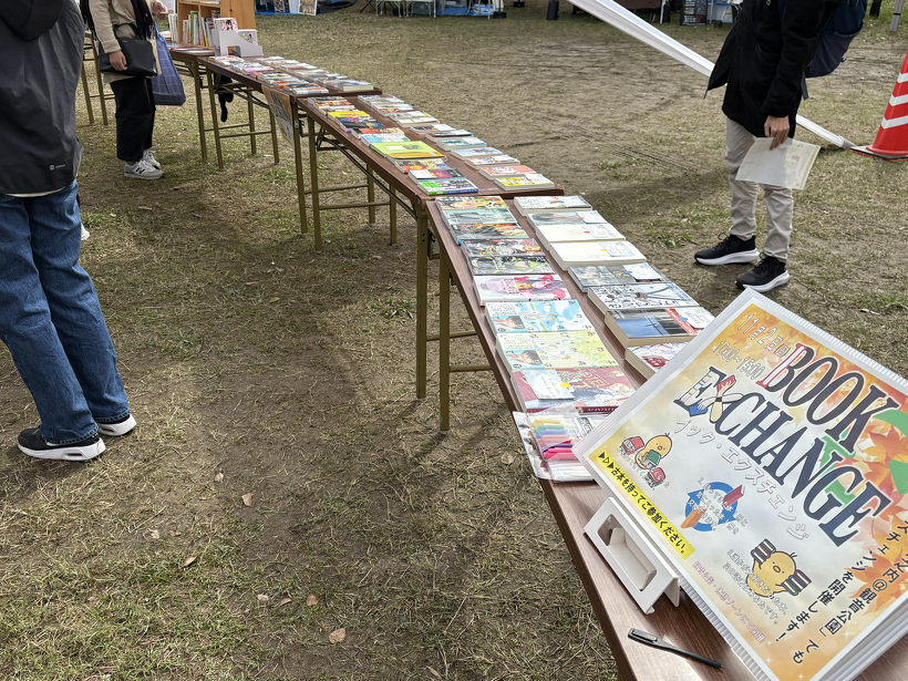 「ブック・エクスチェンジ」は古本と古本を交換するイベントです。参加者の方々にはご自宅から本を持ってきてもらい、並んでいる古本から気になる本を探し、交換してもらいました。本には図書委員が書いたオススメコメントが書かれており、本が好きな気持ちごと次の読者へと本を託します。本を交換した人にもたくさんコメントを書いていただきました。およそ70冊の本が次の読者の方に貰われて行きました!