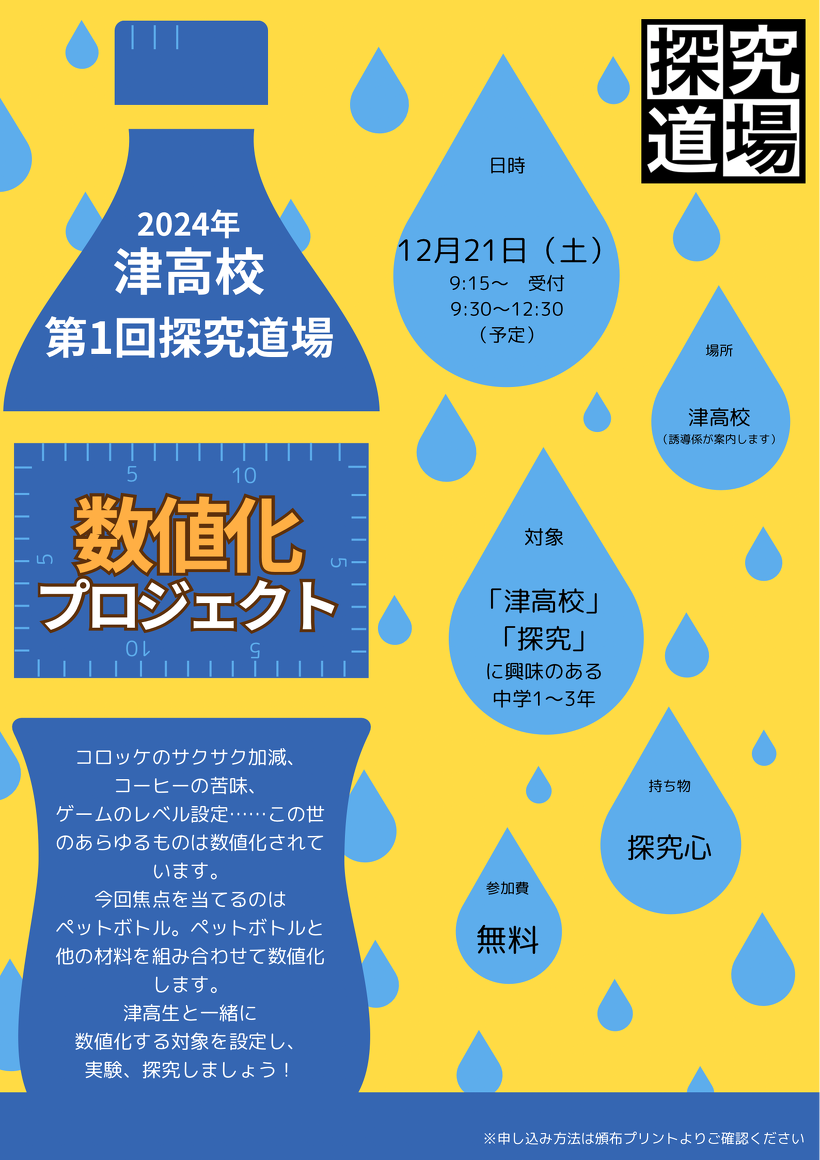 「探究活動ってなんだろう」「高校生と話してみたい」「数値化に興味がある」「津高校がどんなところか知りたい」など、参加する理由は何でも構いません。