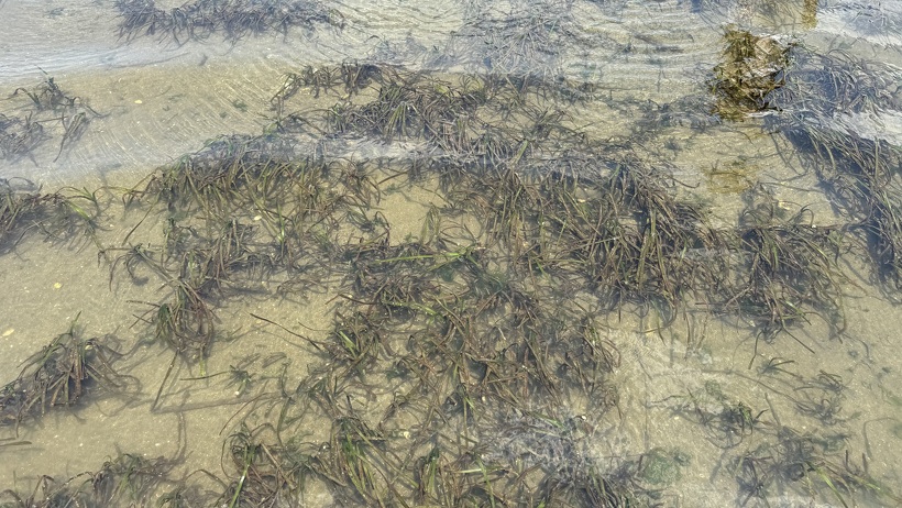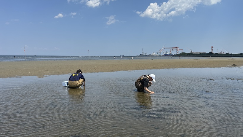 7月22日(月)、SSC生物部2年の生徒が、御殿場海岸でアマモの調査を行いました。潮が引くとアマモが生息している場所まで歩いていくことができます。