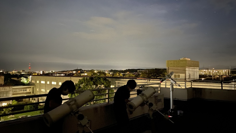2023年09月21日(木) アンタレス食の観測に成功しました[2023.9.21] 雲の隙間をねらう 出現後のアンタレス 出現の様子の動画(音声注意)※日付はずれてますが、時刻は正確です(UT) 9月21日(木)、SSC地学部会の生徒がアンタレス食の撮影に成功しました。 アンタレス食とは、月にアンタレスが隠される現象で、日本において好条件で見られるのは18年ぶりのことでした。 潜入の瞬間は雲に覆われて見られませんでしたが、出現の瞬間は撮影することができました。