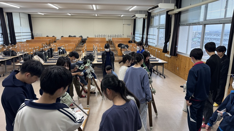 2025年04月22日(火) 望遠鏡の使い方[2025.4.22] 4月22日(火)、SSC地学部会が定例会を開きました。 1年生入部後、初の活動です。今回は望遠鏡の使い方を上級生から下級生に伝授しました。 5月上旬の今年1回目の観望会向けてスキルを磨きます。